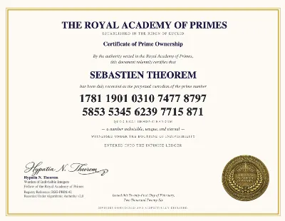 One prime. One certificate. Yours forever.